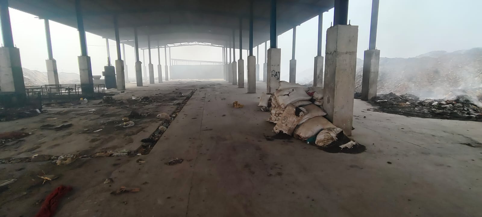 पत्र्या शेड मध्ये मागे लोखंडी मशीन होत्या सद्यस्थितीत मशीन नाही.आग लागल्या मुळे ठिक ठिकाणी राखेचे ढीग दिसून येत आहेत.