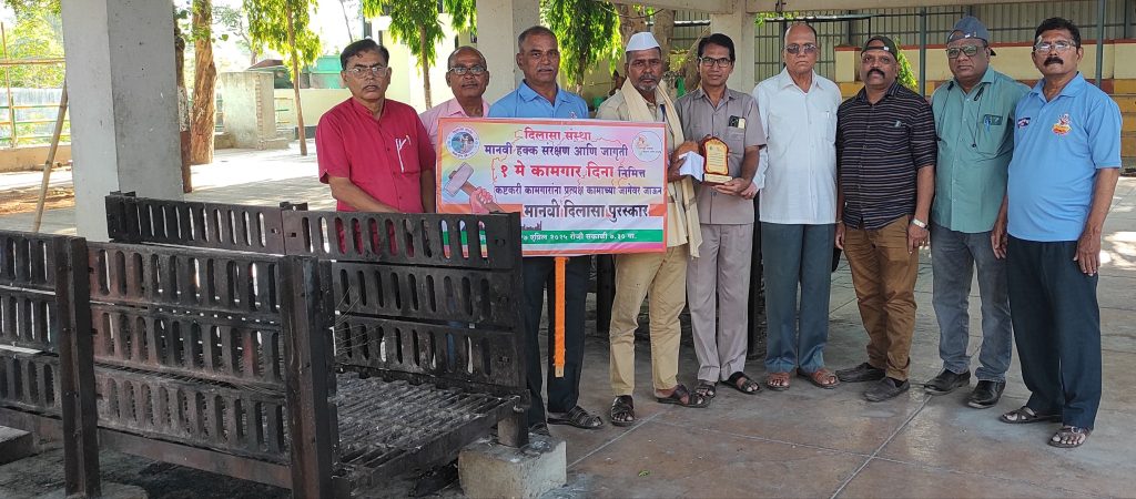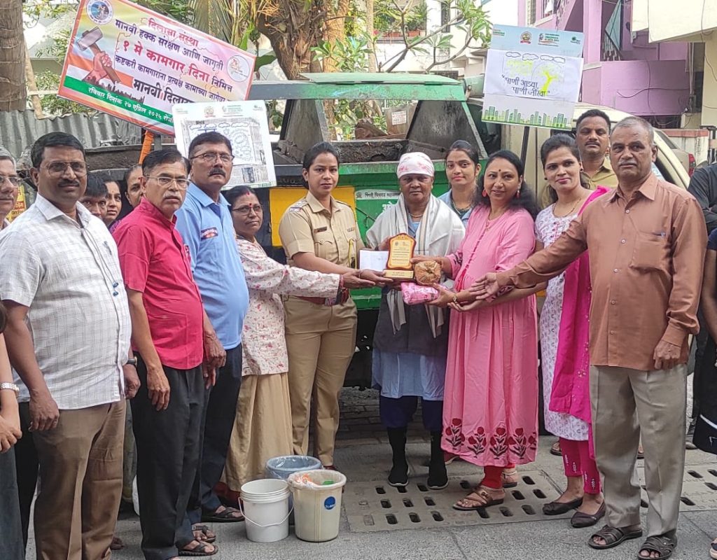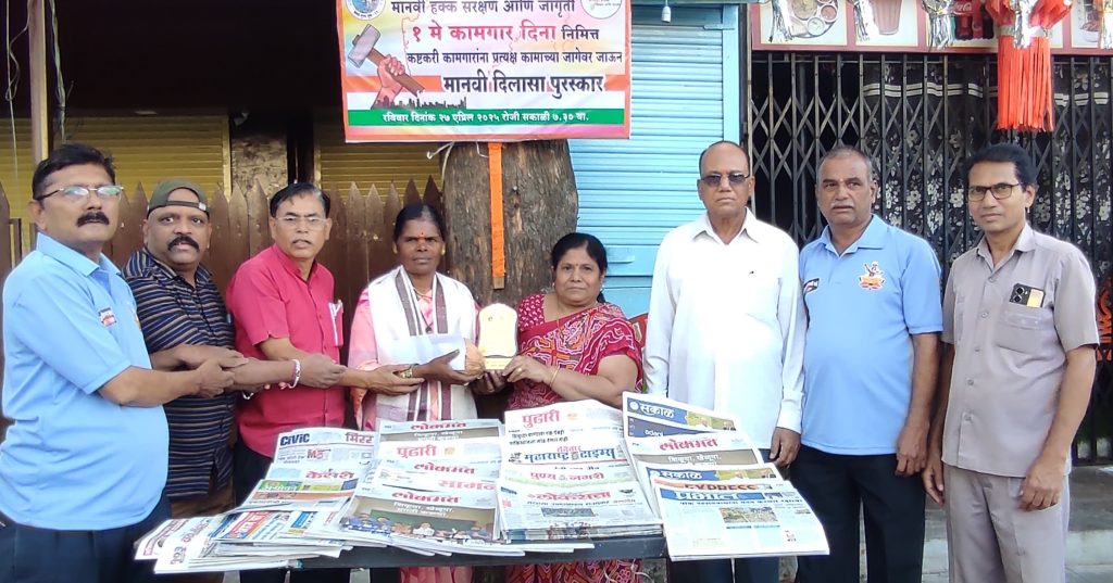 Team MyPuneCity – दिलासा संस्था आणि मानवी हक्क संरक्षण जागृती या संस्थांच्या वतीने एक मे कामगार दिनाच्या व महाराष्ट्र दिनाच्या पूर्वसंध्येला उपेक्षित कष्टकरी कामगारांचा त्यांच्या कामाच्या जागी जाऊन यथोचित सन्मान करण्यात ( Pimple Gurav) आला. पिंपरी चिंचवड महानगरपालिकेच्या घंटागाडीवर काम करणाऱ्या जयश्री म्हस्के, ऊन, पाऊस, थंडीत देखील रोज वृत्तपत्र विक्री करून कुटुंबाची जबाबदारी सांभाळणाऱ्या राऊबाई बिराजदार, पोटासाठी हातगाडीवर केळी विकणाऱ्या अनिता जयस्वाल, पिंपळे गुरव स्मशानभूमीत काम करणारे कामगार विठ्ठल देवकर या कामगारांना त्यांच्या कामाच्या जागी जाऊन ” मानवी दिलासा पुरस्कार” शाल, श्रीफळ, स्मृतिचिन्ह, साडीचोळी, पोशाख तसेच संस्थेच्या वतीने रोख अर्थसहाय्य देऊन सन्मान करण्यात आला.